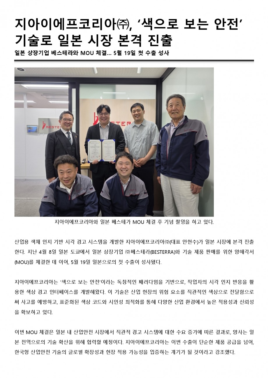 [Daily Asia] GIF Korea Co., Ltd. officially enters the Japanese market with the technology of 'Safety through Color'.